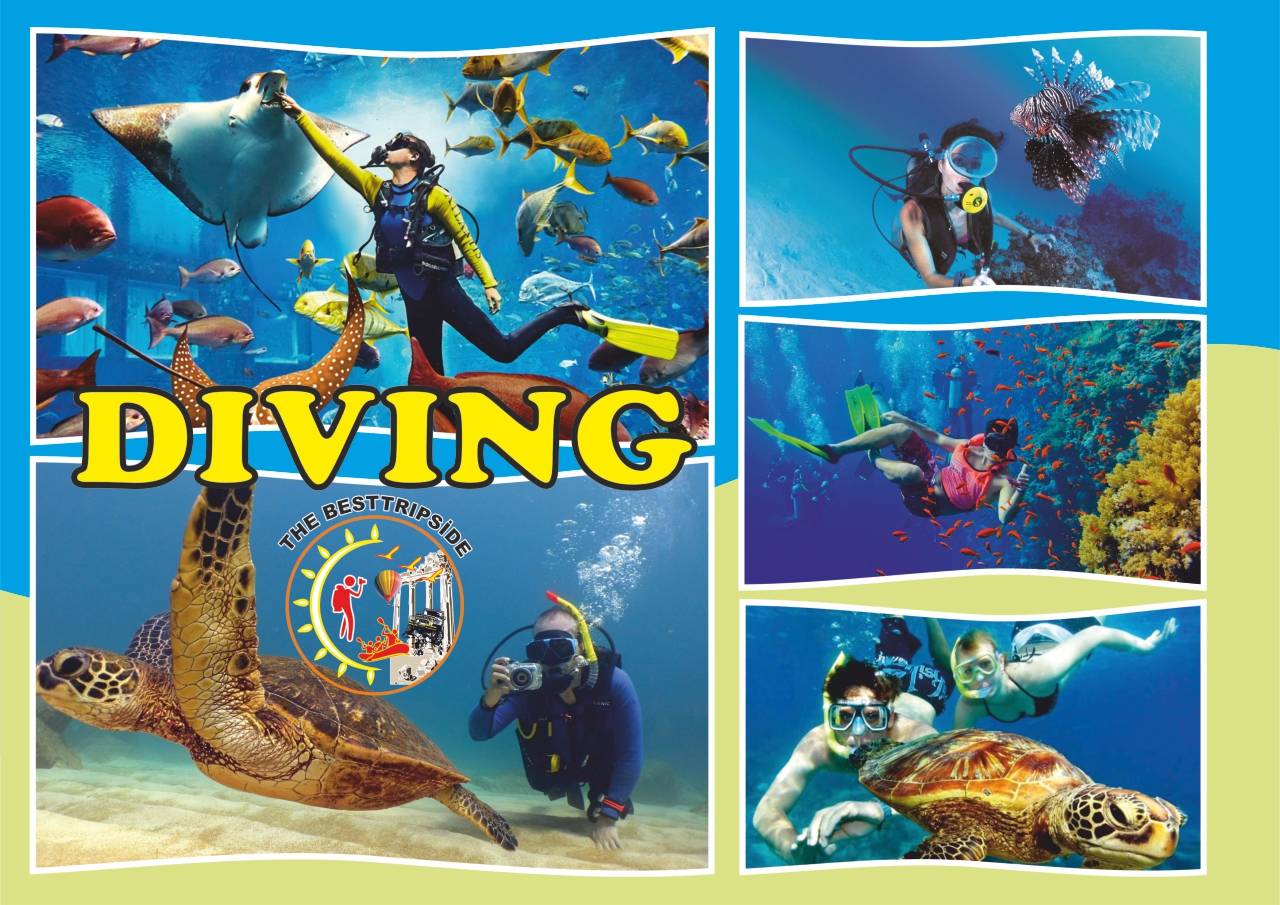 En route to the first dive site, beginner divers will get full diving instructions, while the more experienced divers can choose their equipment.